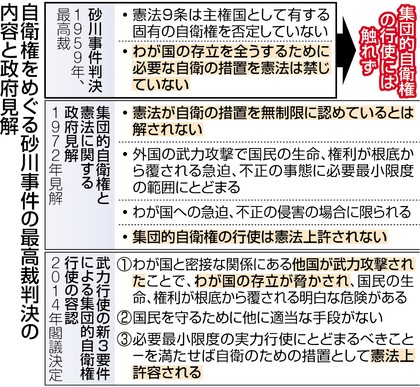 ●安保法案 根拠乏しき「合憲」 政府見解「砂川判決」を拡大解釈 東京新聞 2015年06月10日 |
