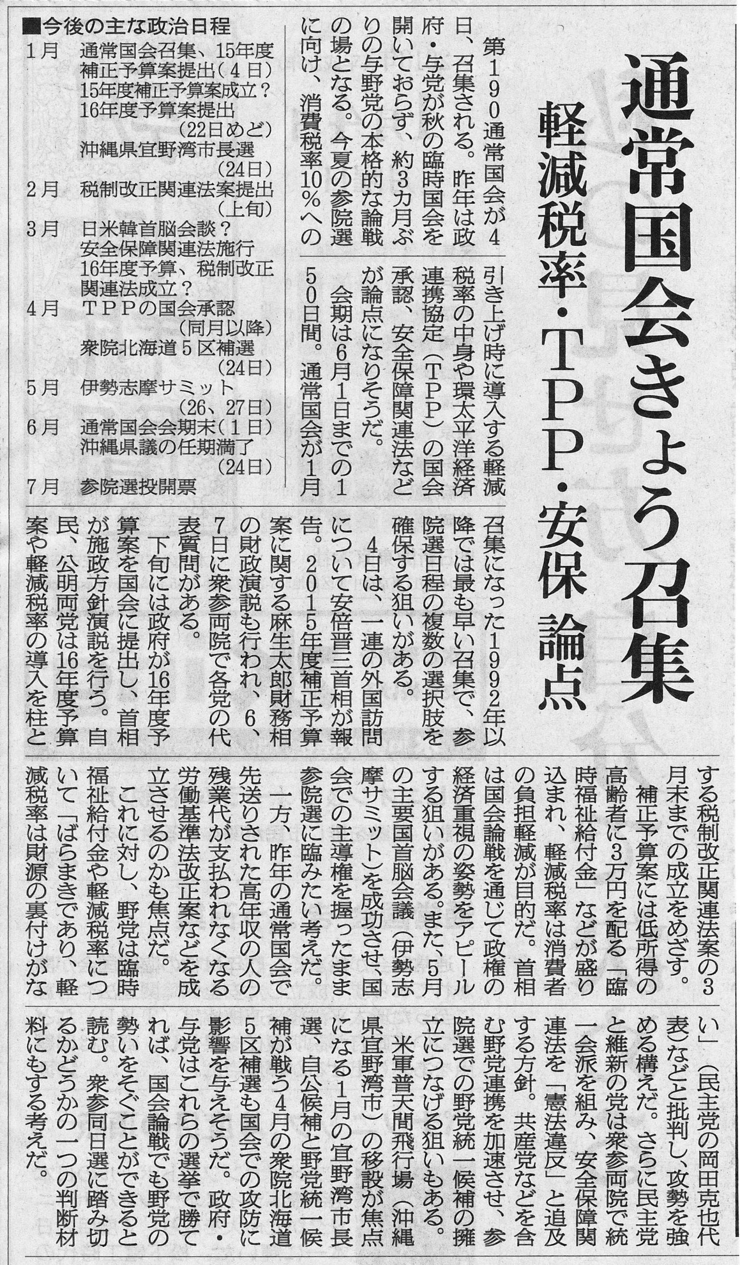 通常国会きょう召集:軽減税率・TPP・安保 論点