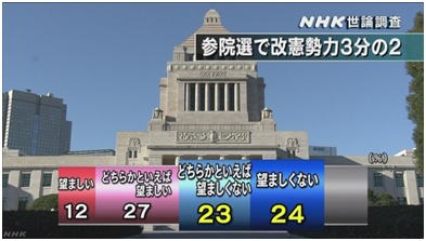 ●NHK世論調査: 参院の改憲勢力3分の2「望ましくない」が上回る NHK 2016年2月9日 |