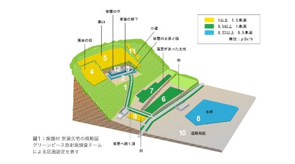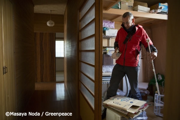 住民の方のお宅7軒で、2万3080カ所で放射線を測りました。 その結果、もし、これらの方々がいま帰還すれば、生涯(70年間)で少なくとも39ミリシーベルトから183ミリシーベルトの範囲で被ばくする可能性があることが明らかになりました。 「政府はこの先どうなるのか教えてくれない」3年間以上、グリーンピースの放射線調査に協力してくださっている飯舘村村民の安齋さん。 「お役所は、これから先自分がどうなるのかを教えてもくれずに、帰れ、帰れって言うばかり。 グリーンピースは、家もまわりもこまかーく測ってくれて、帰ったらどれだけ被ばくするのか、言ってくれて助かる。帰るか、帰らないか、自分で決めたい」