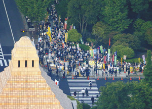 「共謀罪」の趣旨を盛り込んだ組織犯罪処罰法改正案が衆院法務委員会で可決された十九日、国会周辺に集まった人たちは、声を上げられる社会を守ろうと法案反対を叫んだ。特定秘密保護法、安保関連法、そして共謀罪法案。安倍政権下で繰り返される採決強行。「取り返しのつかないことになる」。法案に反対する人たちの抗議は深夜になっても続いた。 (石井紀代美、片山夏子、福田真悟) 午後1時すぎ 「ただいま強行採決がされたもようです」。マイクを通して委員会の状況が伝えられると、国会周辺の歩道を埋めた アムネスティ・インターナショナル日本の元副理事長石原秀子さん(78)は「戦後、享受してきた民主主義をそのまま次の世代に渡したい。今後も抗議し続けていく」。採決後も、路上では廃案を求める声が上がり続ける。「憲法違反の法律要らない」 午後1時半 参議院議員会館で、宗派を超えた宗教関係者でつくる「宗教者九条の和」が緊急記者会見を開き、共謀罪の廃案を求める声明を発表。日本キリスト教協議会の小橋孝一議長は「六〇年安保の時は採決後、運動が収まったが、今回は粘り強く反対し続ける」と話した。 衆院法務委員会を傍聴後、国会から出てきた東京都世田谷区の羽立教江(はだちのりえ)さん(76)は「納得できないまま採決されて涙が出てきた」と悔しそう。 午後2時50分 三鷹市の心理カウンセラーの男性(52)が、米軍新基地建設が進む沖縄・辺野古(へのこ)で座り込む人たちと連帯する思いを込めて、沖縄の歌「島人(しまんちゅ)ぬ宝」を熱唱した。採決の強行に「あまりにひどい。国民の人権じゅうりんは既に始まっている」と厳しい表情で語る。 午後3時 東京は二五・六度の夏日に。国会前で座り込みをする人たちは水を飲んだり、日傘を差したり。戦時中、外国帰りの祖父が特別高等警察に目をつけられ、非国民といわれたという茨城県筑西市の農業国府田喜久男さん(70)も座り込み。「政府がやろうと思えば、何でも取り締まれる。取り返しのつかないことになる。共謀罪が通っても、反対し続ける」 午後7時45分 若者グループ「SEALDs(シールズ、自由と民主主義のための学生緊急行動)」の元メンバーらが結成した学生らでつくる新団体「未来のための公共」のメンバーが、国会正門前でマイクを握った。「自由にしゃべれる社会を守れ」「きょう・ぼう・ざい反対!」とリズミカルに連呼した。 午後10時45分 デモが終わった後も若者らがその場に残り、話し込んでいた。東京都江東区の大学生近藤隆太さん(20)は「共謀罪の危険性とこれだけの人が反対しているということを世の中にアピールしたい。世論で審議を延長させられれば、廃案の可能性もある」と話した。 |