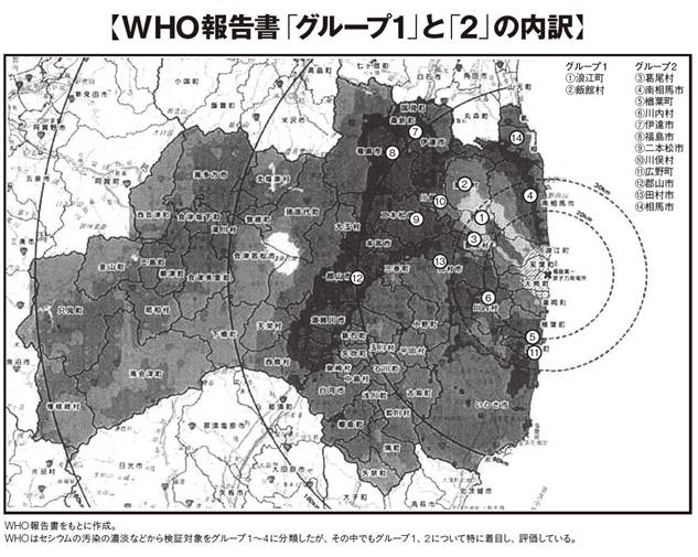 問題は、福島第一原発の立地自治体である双葉町と大熊町、そして大熊町に隣接する富岡町の3町が、どのグループにも入っておらず、評価の対象から外されていることである。これらの町の住民は「速やかに避難」したからなのだという。 しかし、3町の住民もまた、避難開始前から環境中に漏れ出していた放射能によって相当な被曝をしていた。具体例を挙げよう。 福島第一原発の直近から避難してきた一般市民が被曝していることが判明し始めた2011年3月12日、放射線測定器で1万3000カウント(CPM。1分ごとのカウント)以上を計測した人のすべてを「全身の除染が必要な被曝」とみなし、シャワーで体を洗い流していた。この日、全身の除染が必要とされた住民は3人。そして翌3月13日、福島県は、原発の3キロメートル圏内から避難してきた19人にも放射性物質が付着していたと発表する。住民の被曝は22人となった。 (全文は『宝島』2015年1月号に掲載) 【告発スクープ】 “WHO「福島県でガン多発」報告書” 国と記者クラブが無視! 〜誰も書けなかった福島原発事故の健康被害 【第3回 後編】〜ガンのアウトブレイクに備えよ――汚染地域に暮らしていた(もしくは暮らし続けている)若年層における甲状腺ガン、白血病、乳ガン、固形ガンの多発を予測するWHO報告書はなぜ無視され続けるのか?(後編) -----